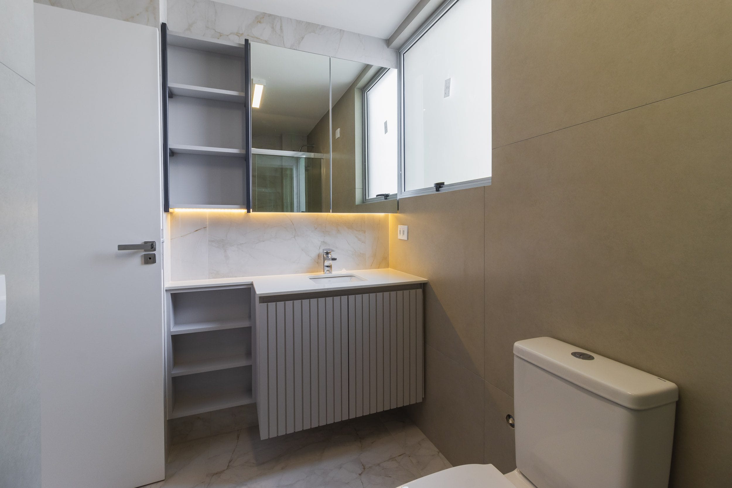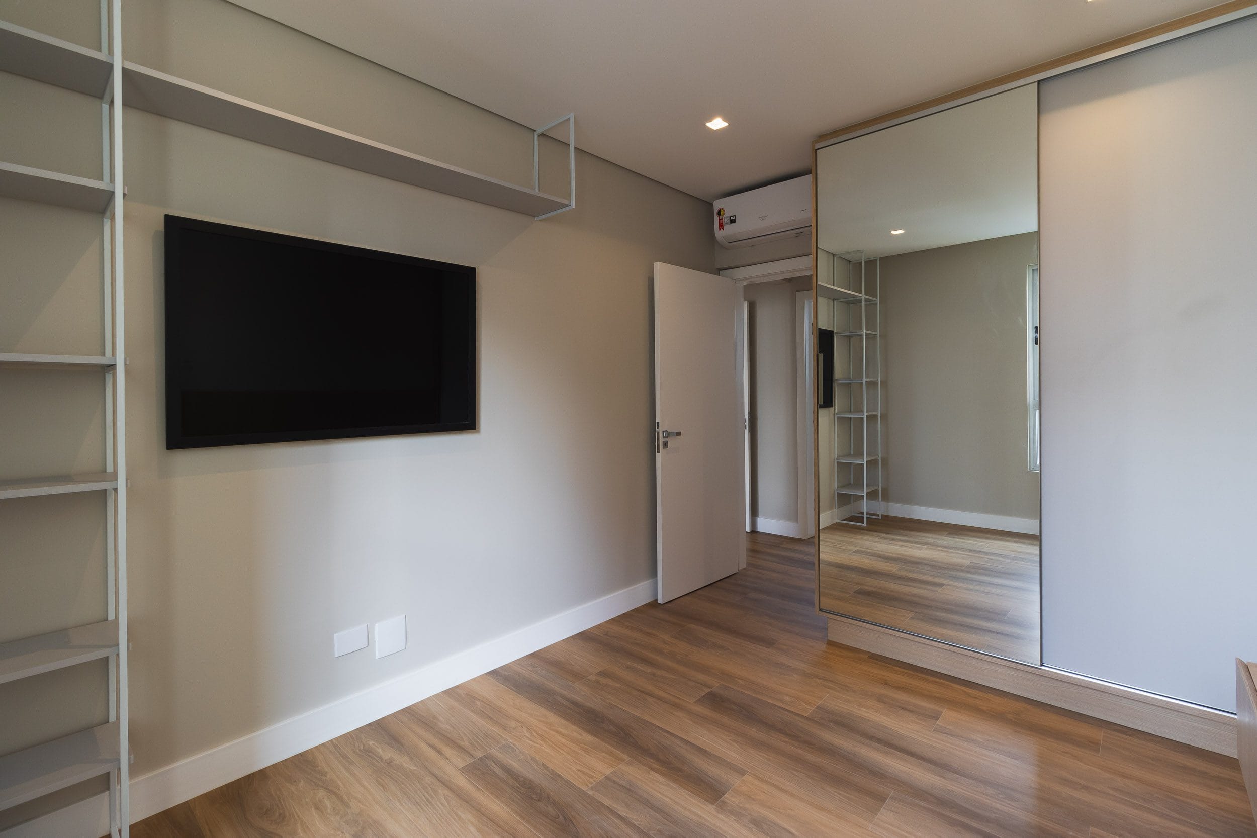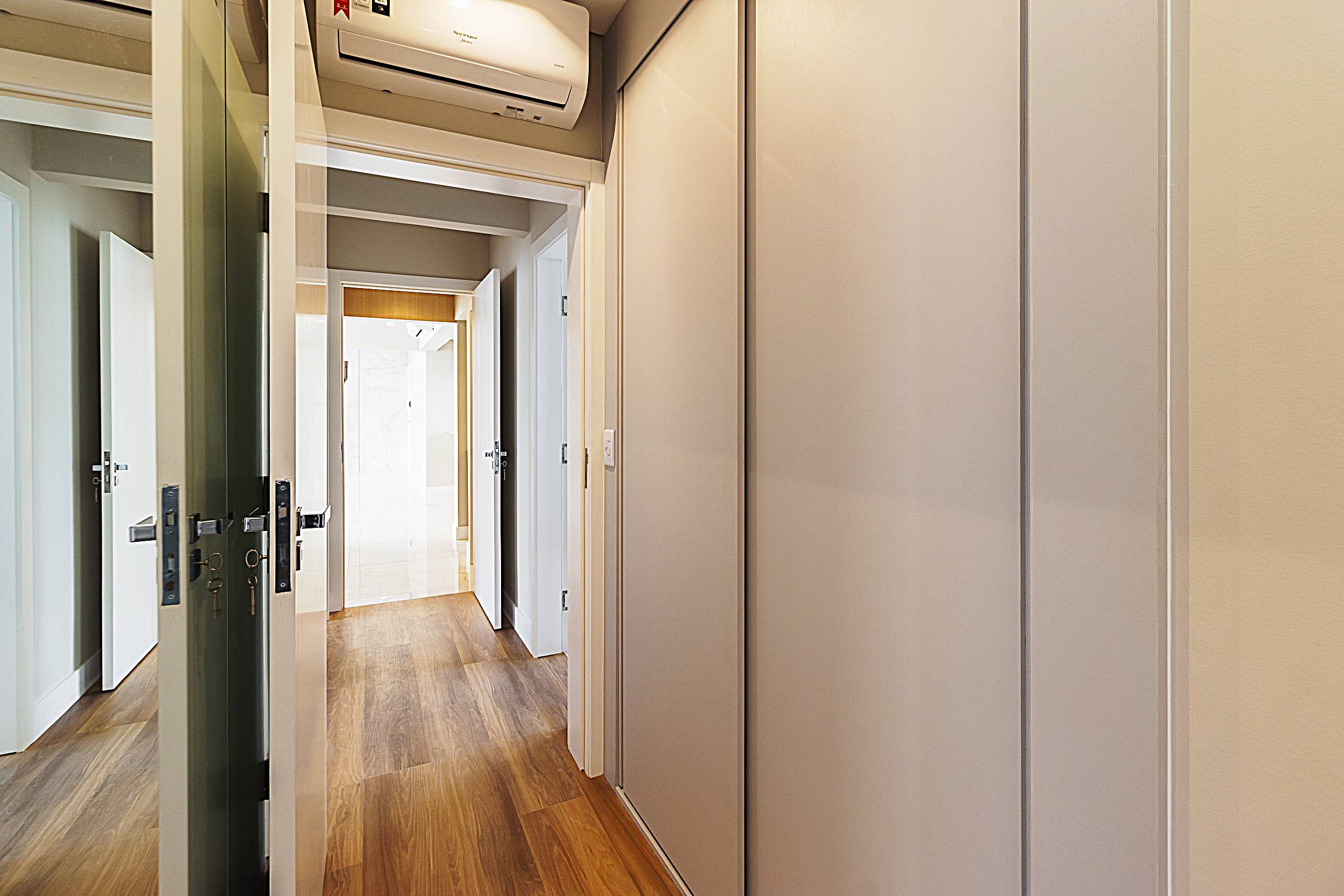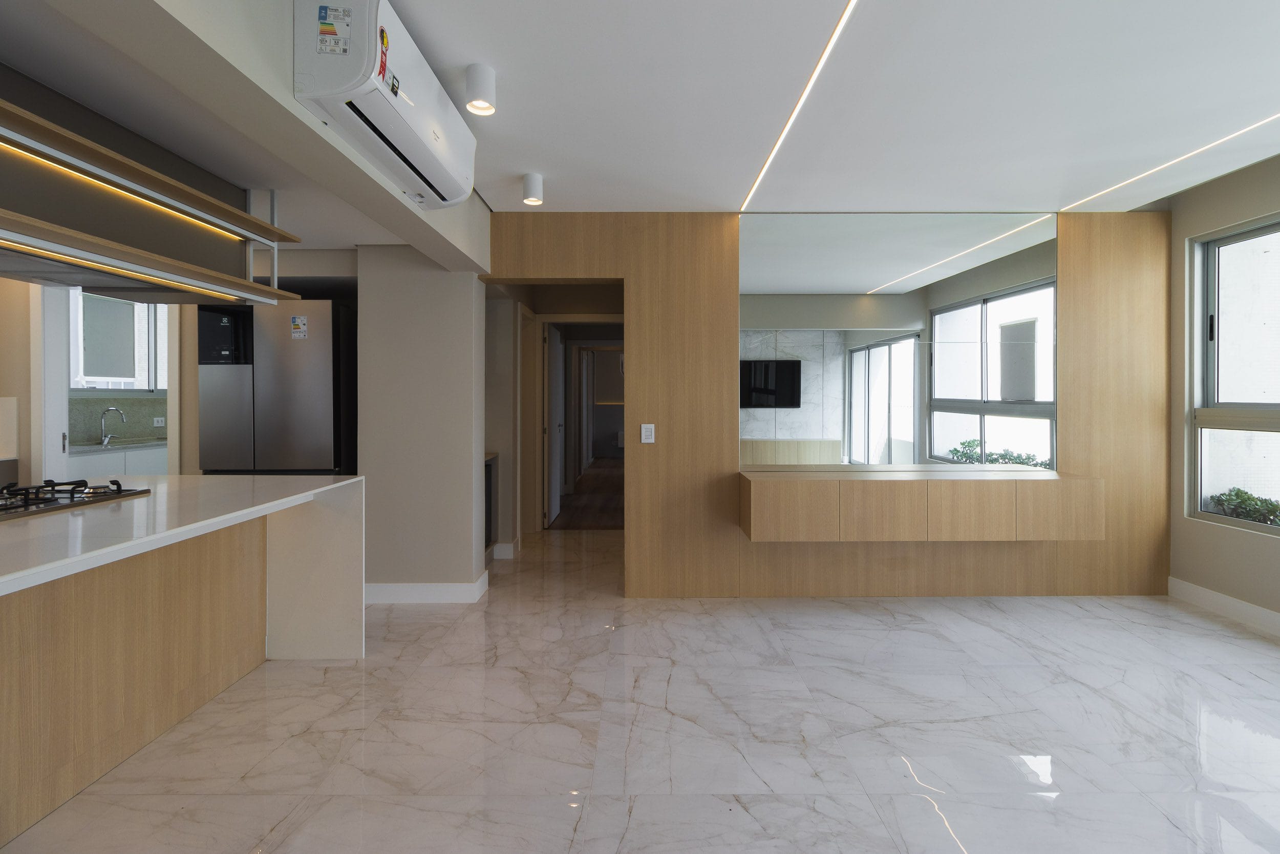 - Como o retrofit transformou esse apartamento?: Instalações elétricas e hidráulicas totalmente renovadas, Readequações de projeto para trazer mais amplitude e integração entre os ambientes, proporcionando mais conforto e funcionalidade, Novos revestimentos. Louças, metais, marcenaria, tampos em pedra, luminárias e portas