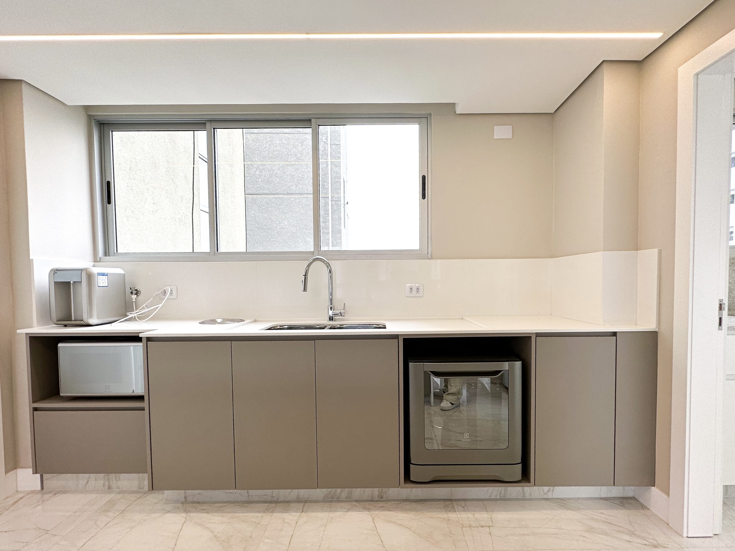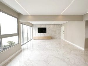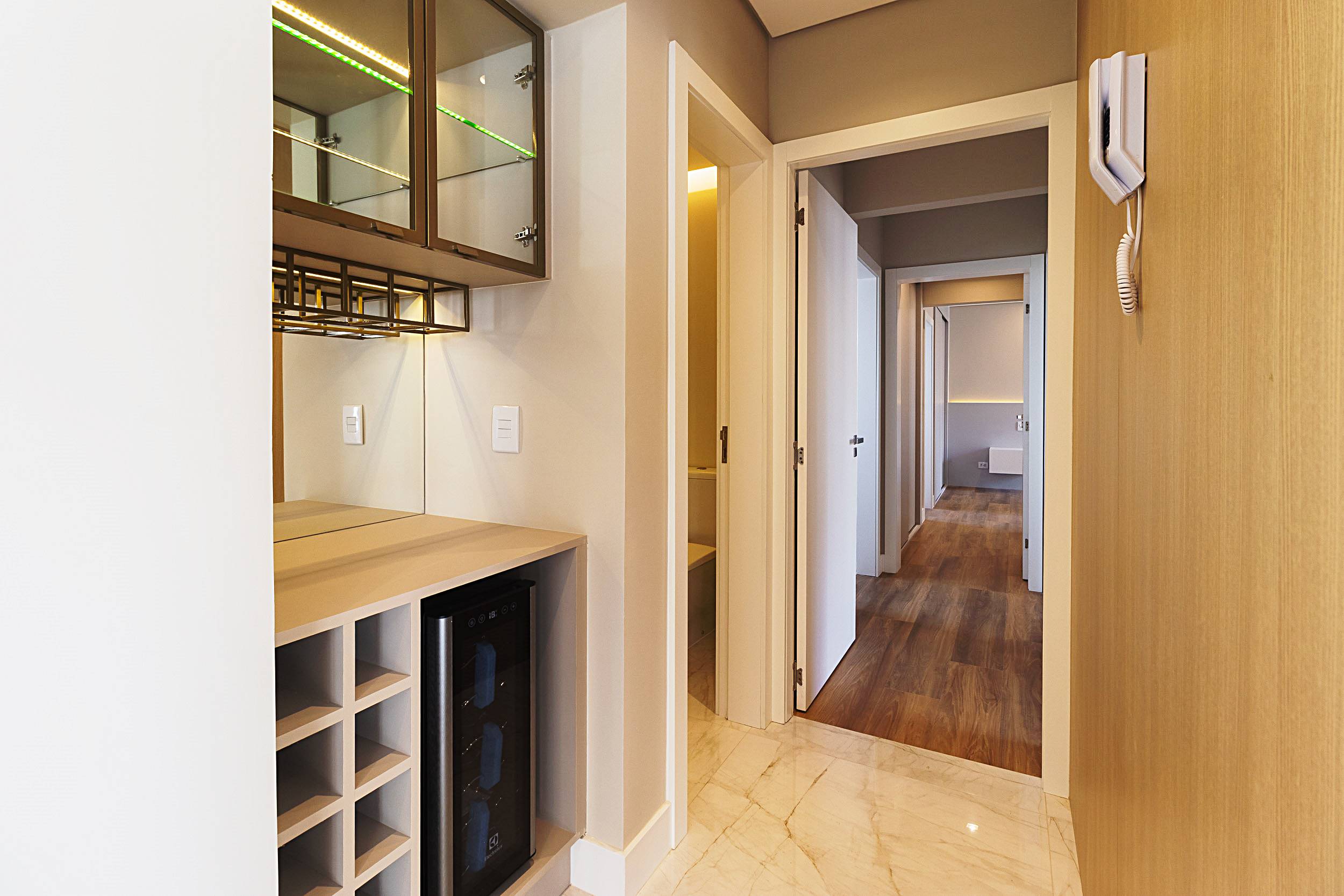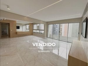- Como o retrofit transformou esse apartamento?: Instalações elétricas e hidráulicas totalmente renovadas, Readequações de projeto para trazer mais amplitude e integração entre os ambientes, proporcionando mais conforto e funcionalidade, Novos revestimentos. Louças, metais, marcenaria, tampos em pedra, luminárias e portas