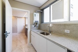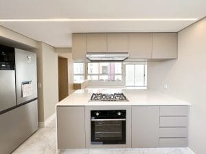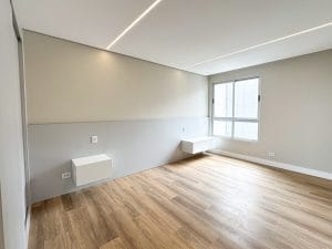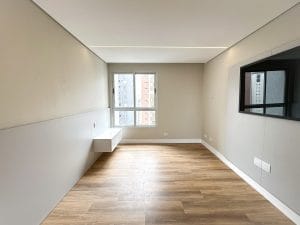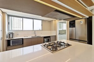 - Diferenciais: • Semimobiliado • 16ª andar • Face Norte • 3 quartos, sendo 1 suíte • Sala e cozinhas integradas • Cozinha com todos os eletros • Lavabo • Sacada • Piso vinílico e porcelanato nas áreas frias • Lavanderia com armários e equipada • Ar-condicionado Spliter Inverter Quente e Frio na sala e nos quartos