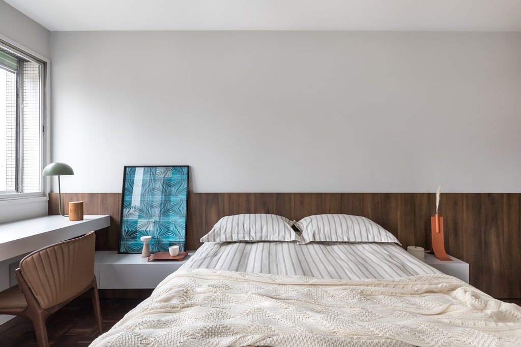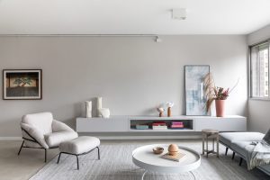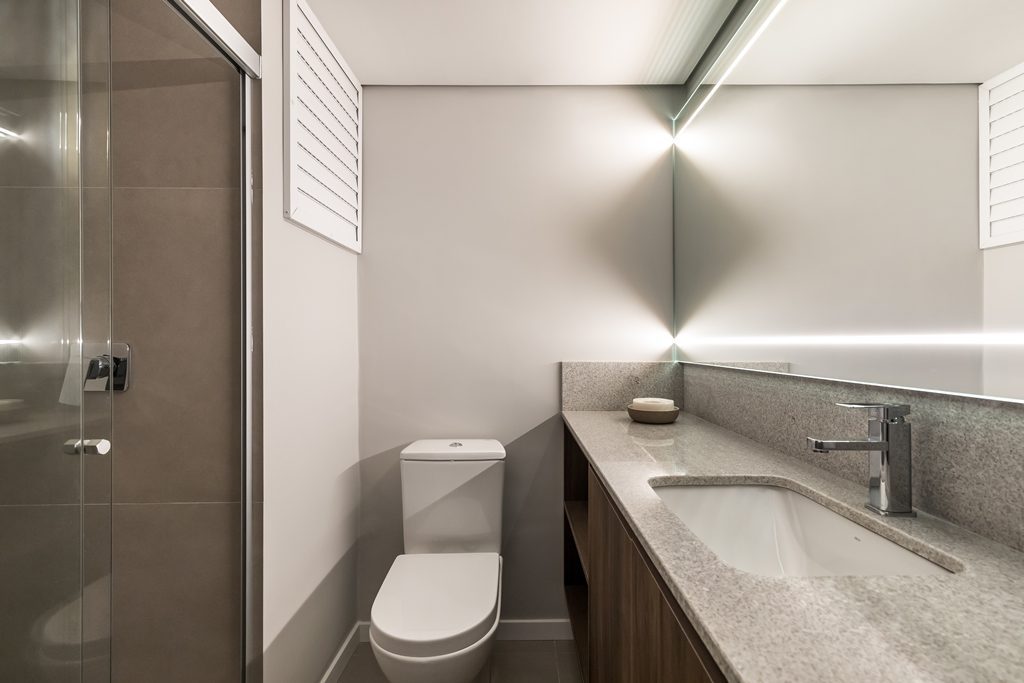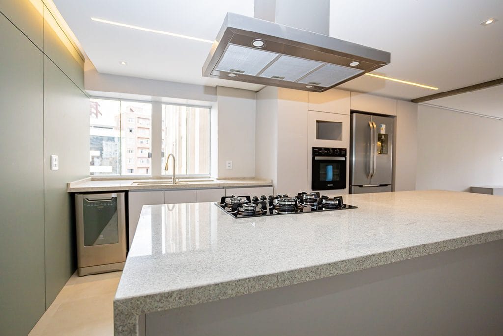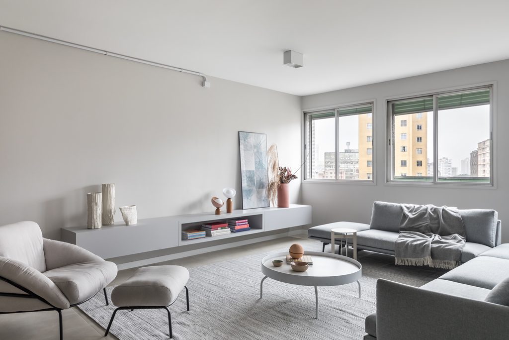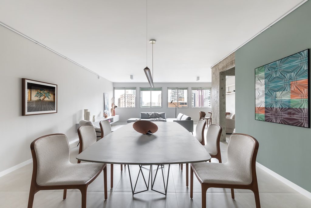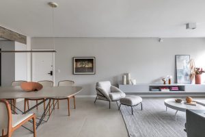 - Como o retrofit transformou esse apartamento?: Instalações elétricas e hidráulicas totalmente renovadas, Readequações de projeto para trazer mais amplitude e integração entre os ambientes, proporcionando mais conforto e funcionalidade, Novos revestimentos. Louças, metais, marcenaria, tampos em pedra, luminárias e portas