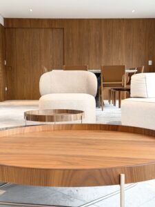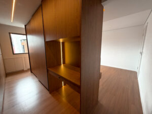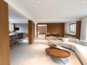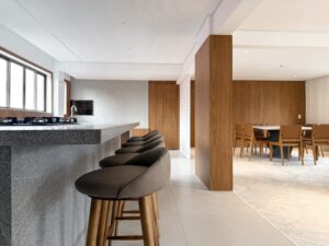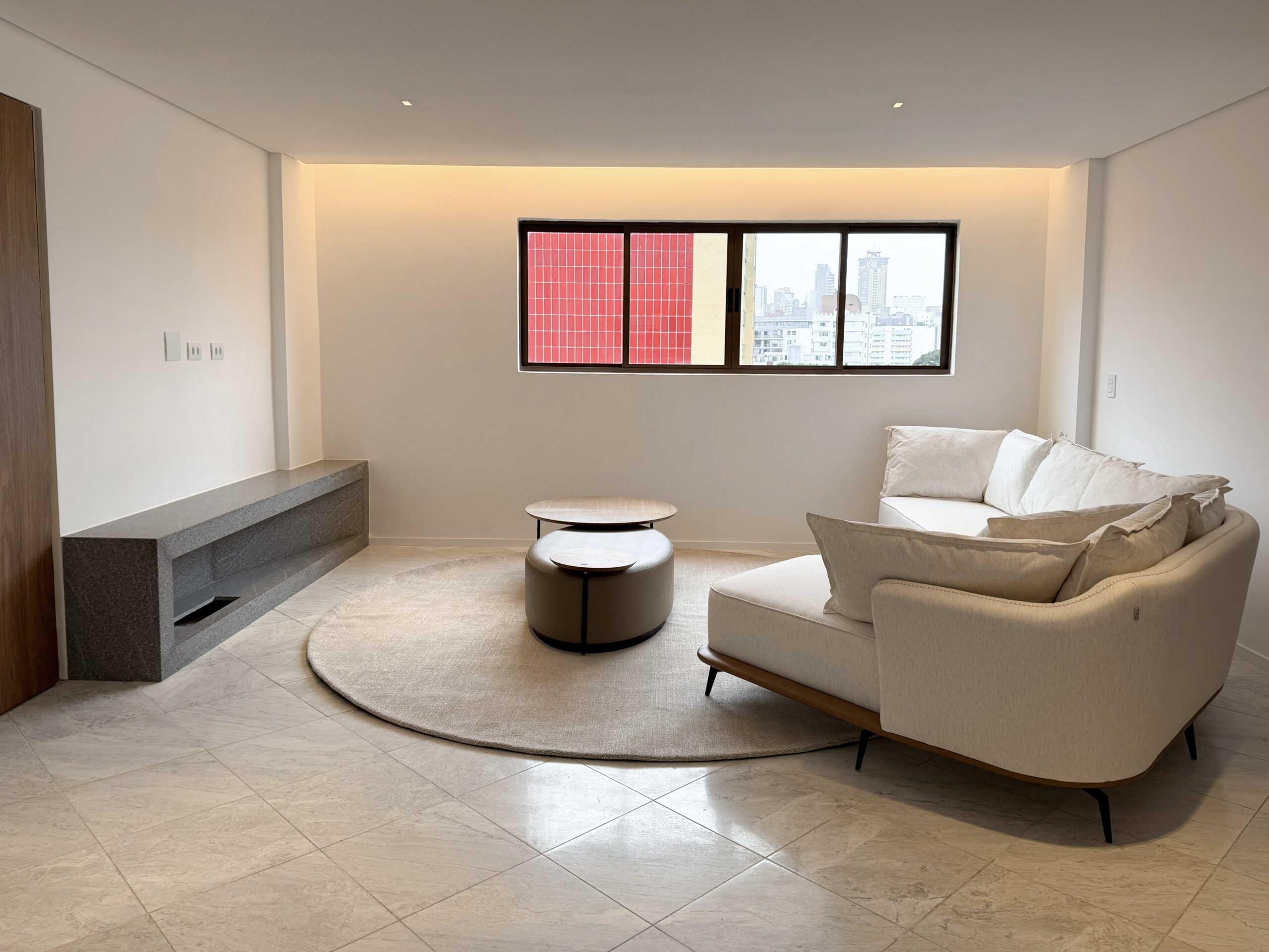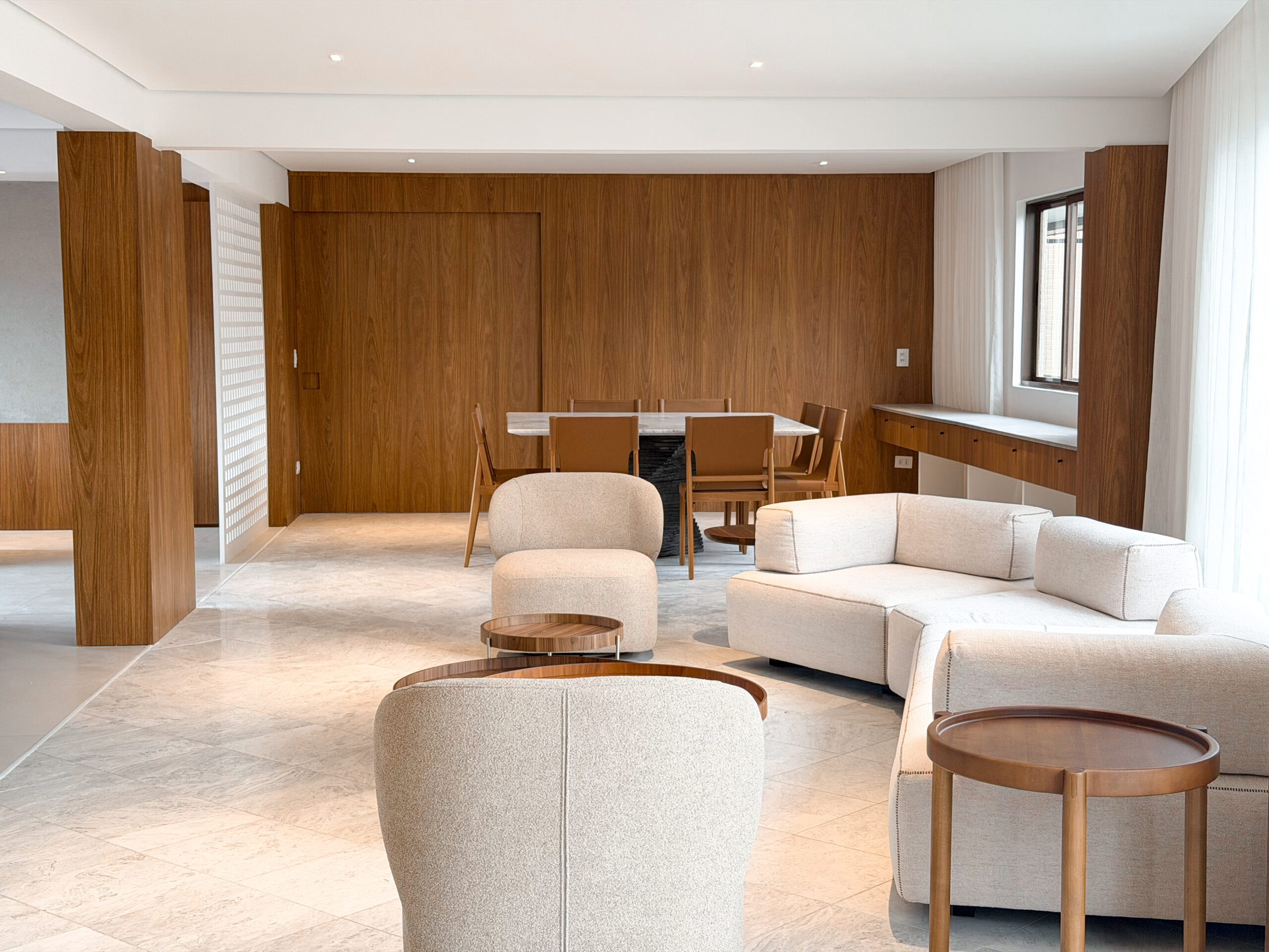 - Como o retrofit transformou esse apartamento?: Instalações elétricas e hidráulicas totalmente renovadas, Readequações de projeto para trazer mais amplitude e integração entre os ambientes, proporcionando mais conforto e funcionalidade, Novos revestimentos. Louças, metais, marcenaria, tampos em pedra, luminárias e portas