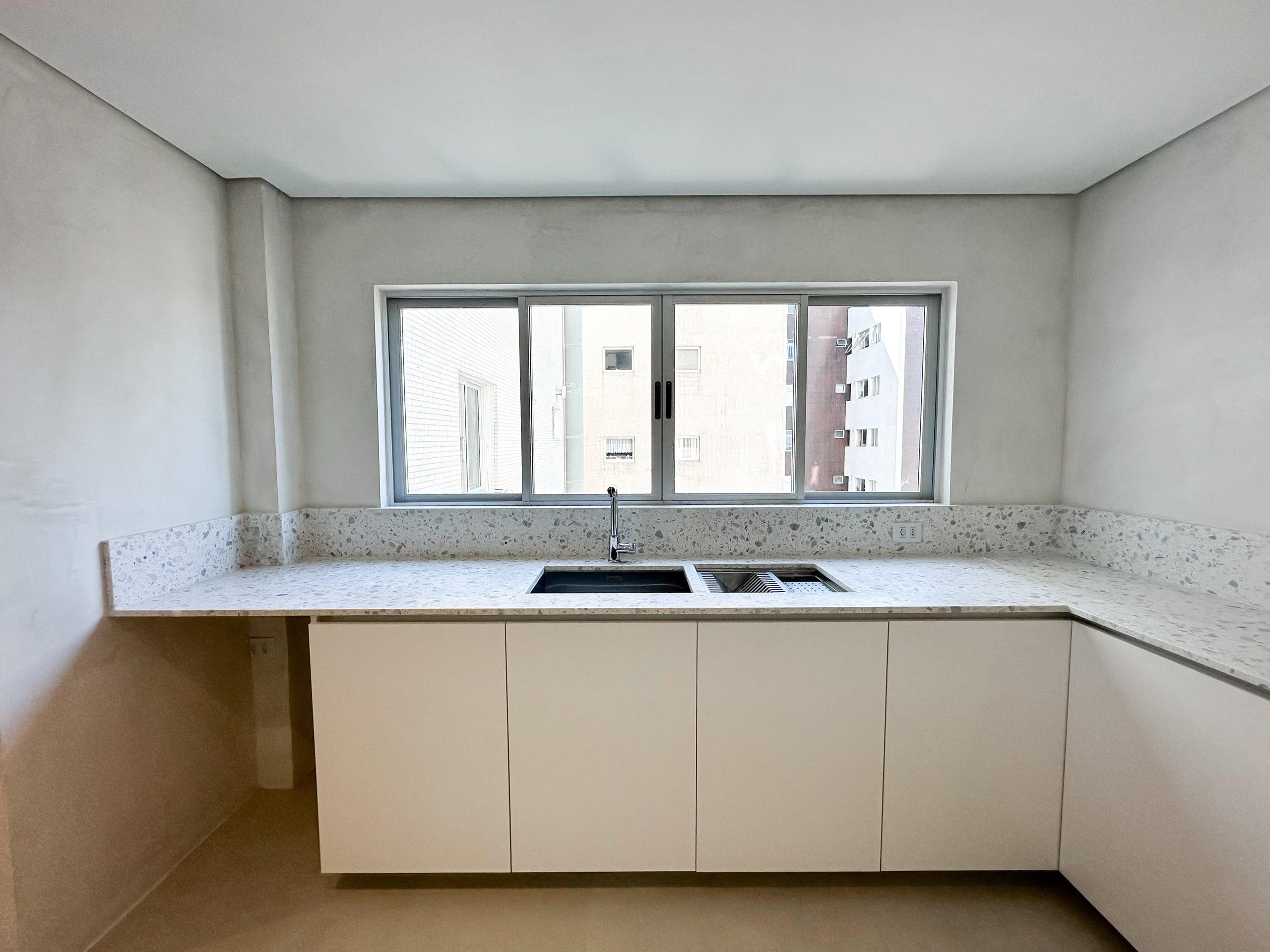 - Diferenciais: • 250 m² de área privativa • 15º andar • Face Norte • Sala e cozinhas integradas • Semimobiliado • Churrasqueira • Hidráulica, Elétrica e Gás 100% refeitos • Infraestrutura para ar-condicionado • Projeto luminotécnico • 2 vaga de garagem