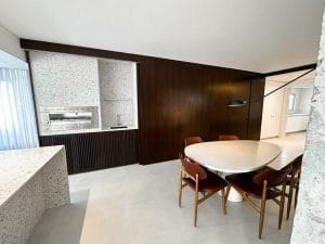 - Como o retrofit transformou esse apartamento?: Instalações elétricas e hidráulicas totalmente renovadas, Readequações de projeto para trazer mais amplitude e integração entre os ambientes, proporcionando mais conforto e funcionalidade, Novos revestimentos. Louças, metais, marcenaria, tampos em pedra, luminárias e portas