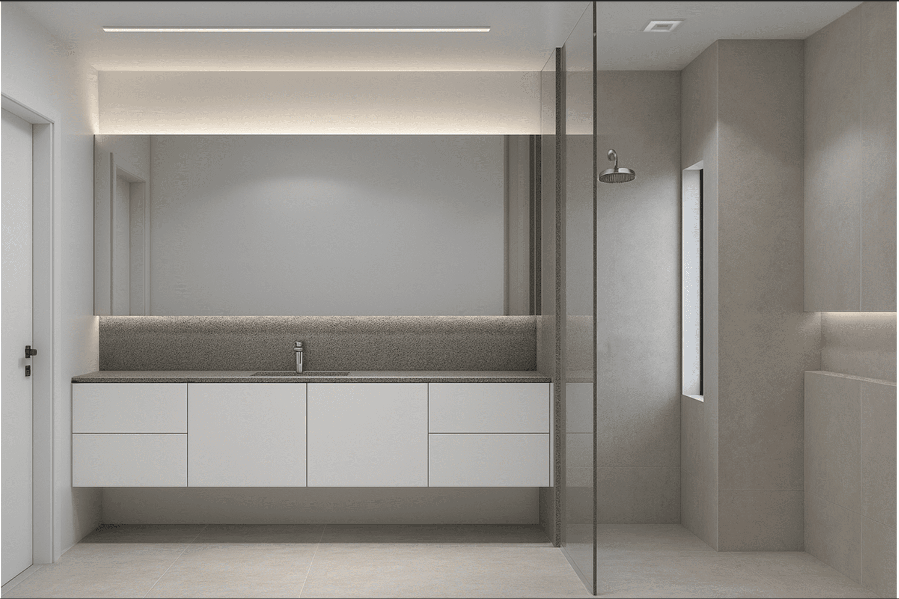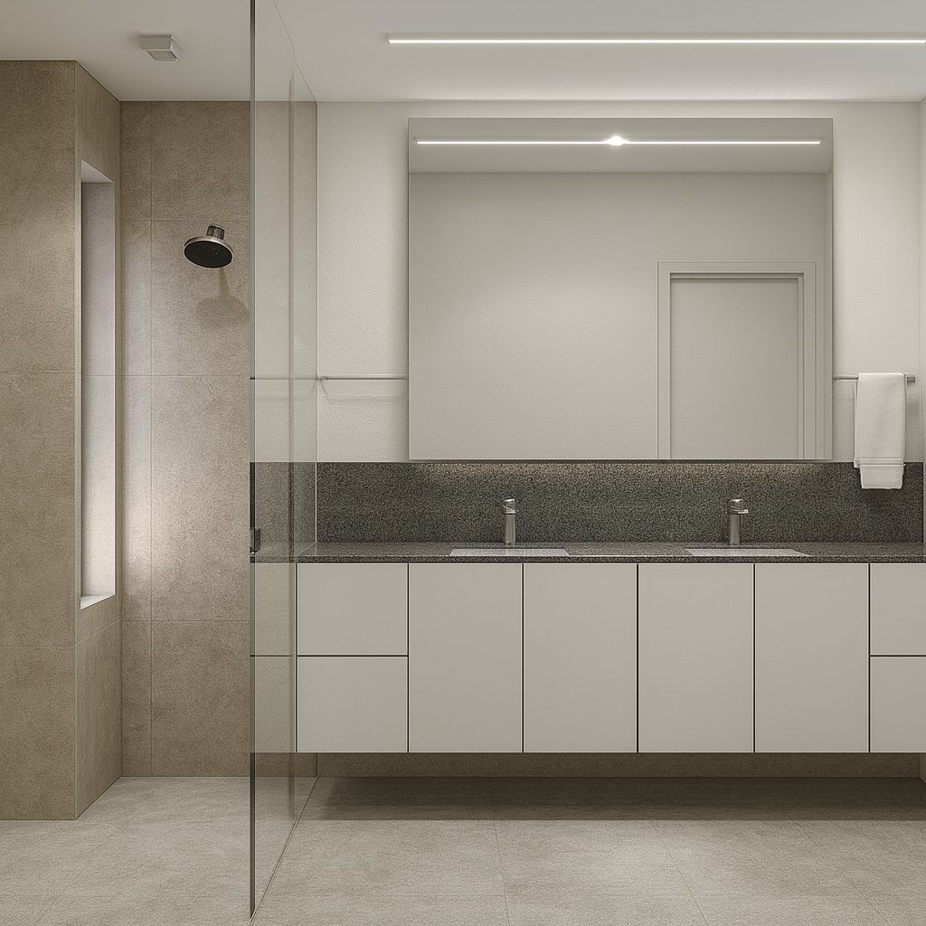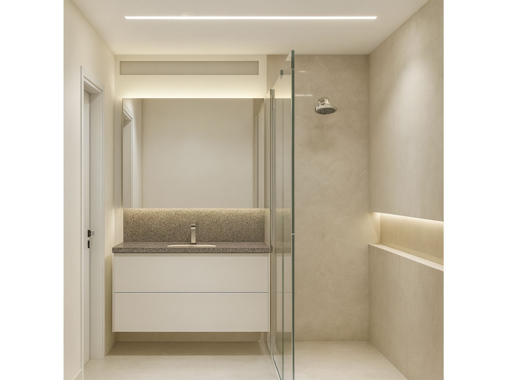 - Marcenaria e marmoraria nas áreas sociais, banheiros.