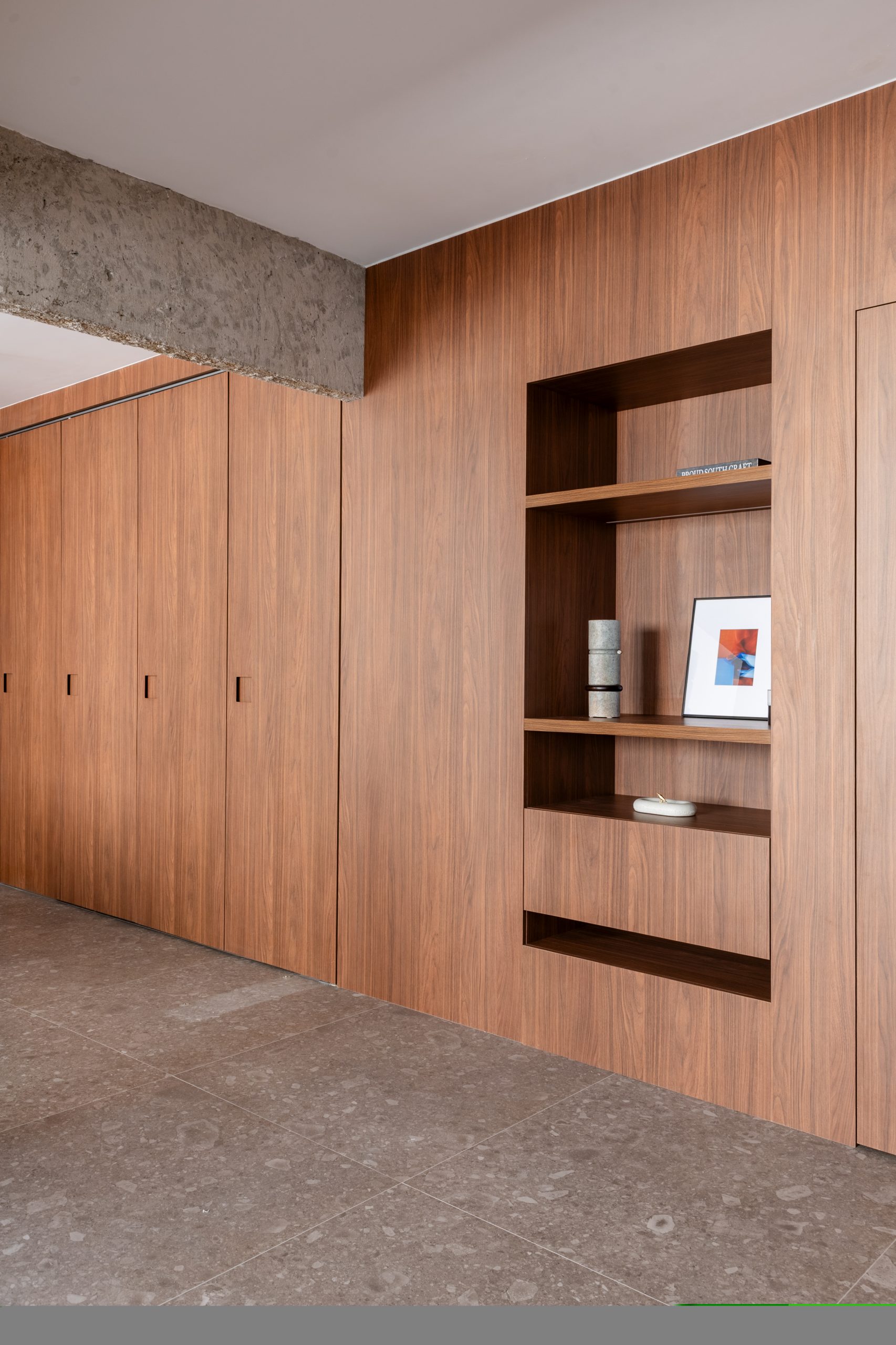 - Como o retrofit transformou esse apartamento?: Instalações elétricas e hidráulicas totalmente renovadas, Readequações de projeto para trazer mais amplitude e integração entre os ambientes, proporcionando mais conforto e funcionalidade, Novos revestimentos. Louças, metais, marcenaria, tampos em pedra, luminárias e portas