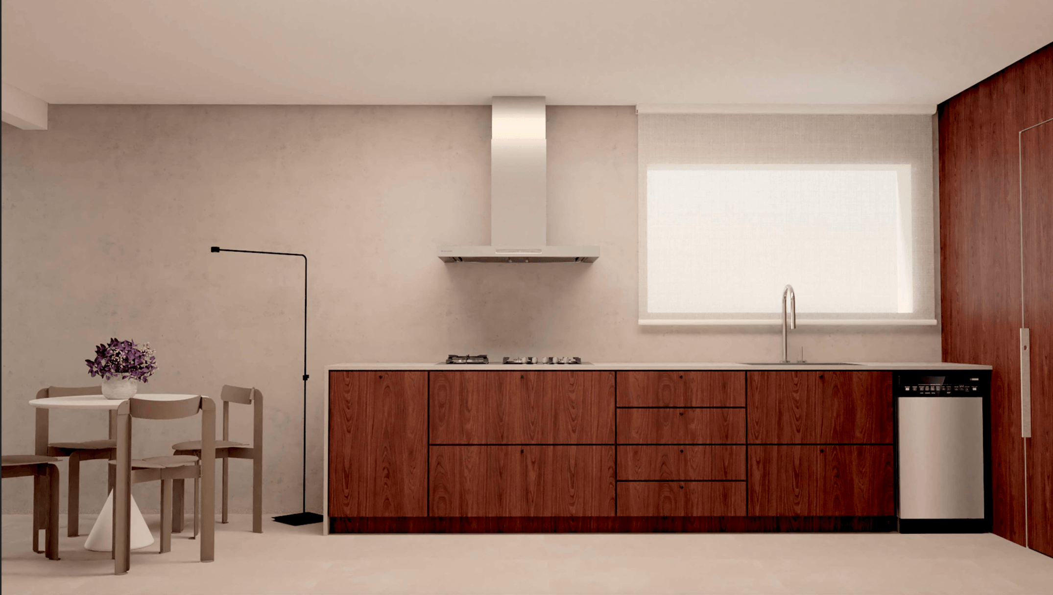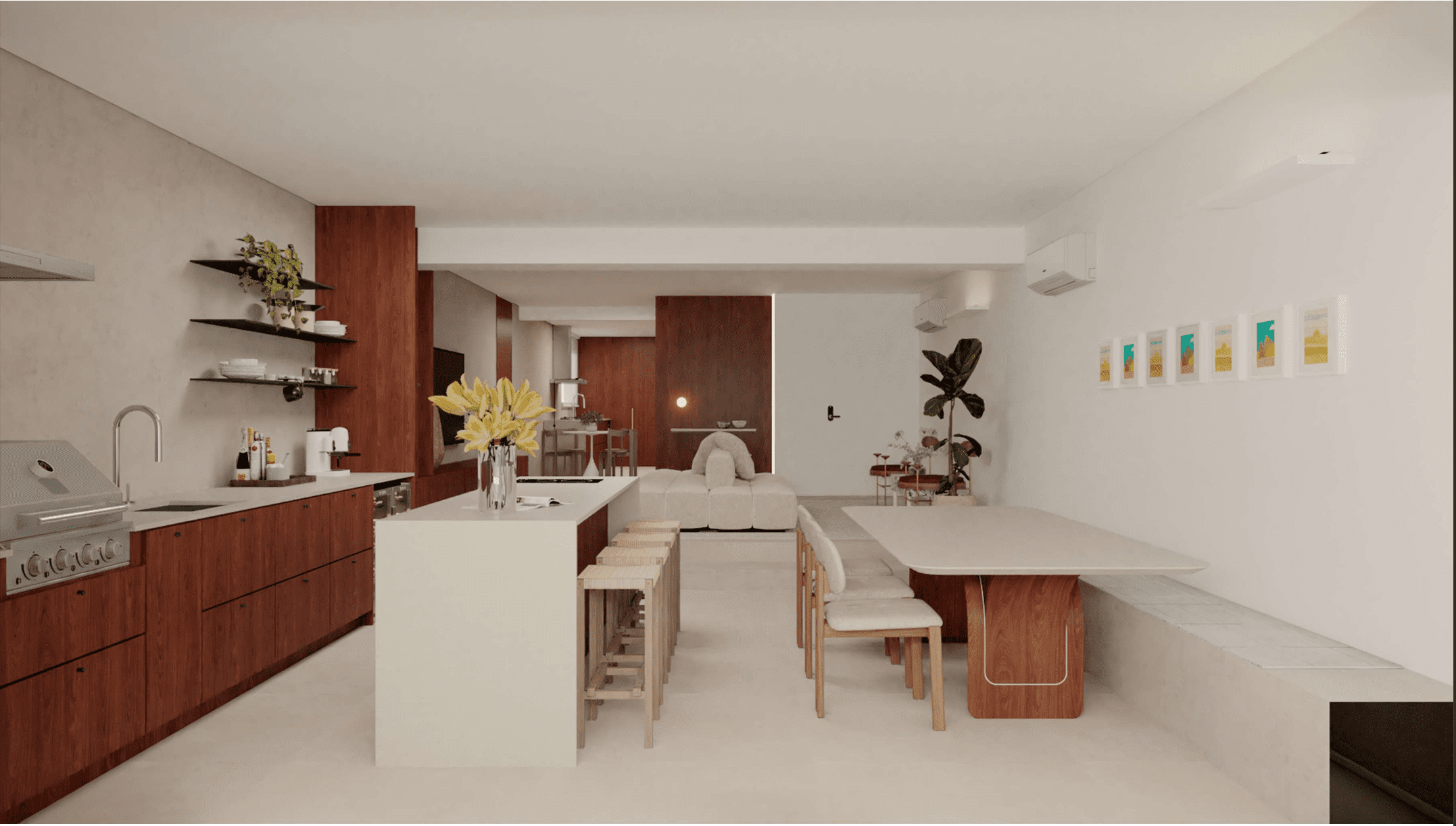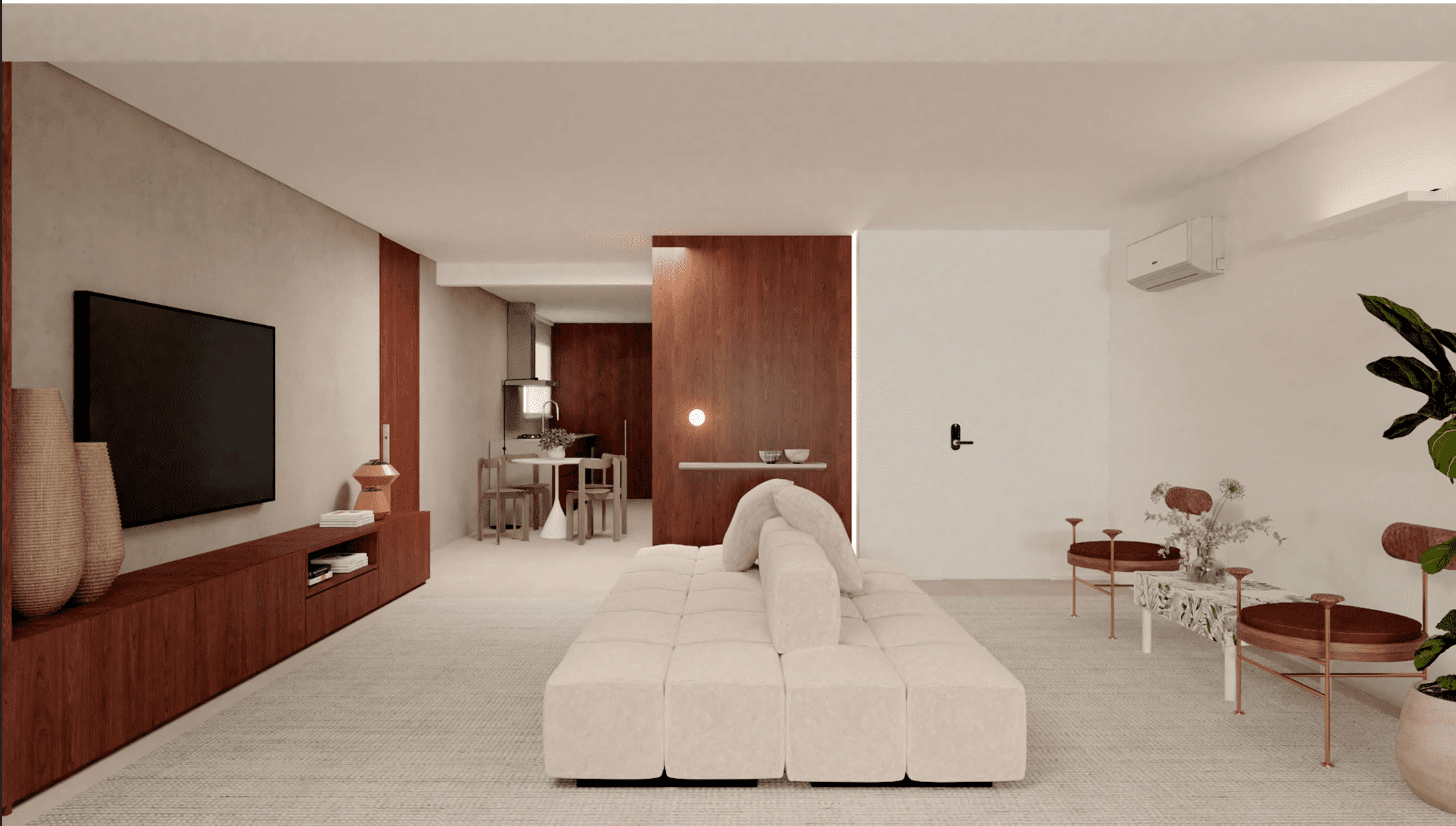 Logo na entrada, a sala de estar se conecta à área gourmet com a sala de jantar, que conta com sacada e vista privilegiada — perfeita para receber, com uma churrasqueria gourmet e sacada. A cozinha possui copa e marcenaria planejada, garantindo praticidade no dia a dia. Os acabamentos elevam o padrão do imóvel: piso vinílico na área íntima, porcelanato na área social e painel em microcimento na sala de estar.