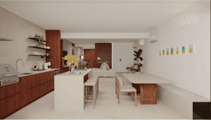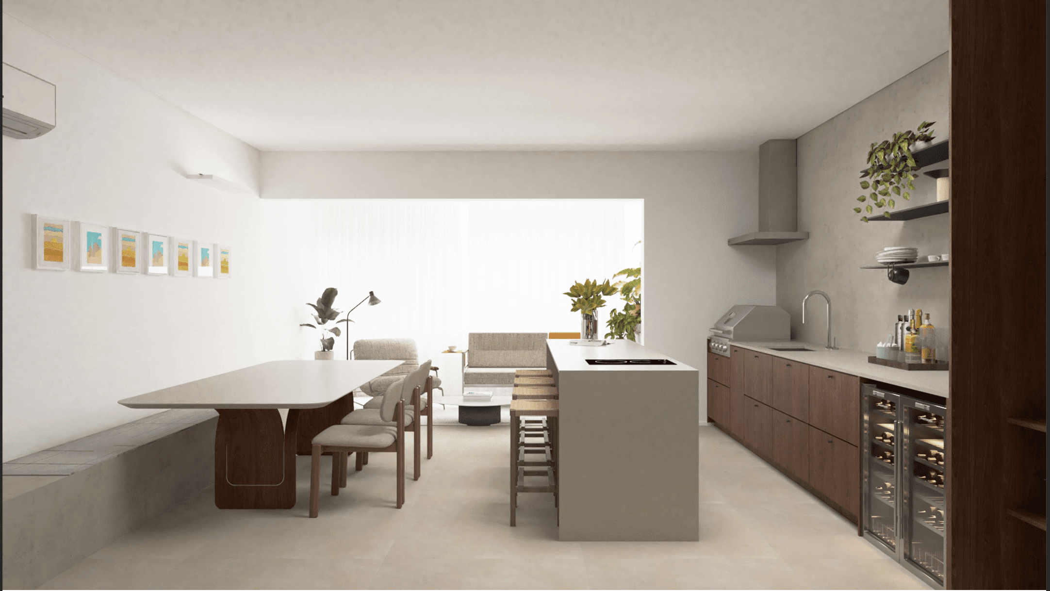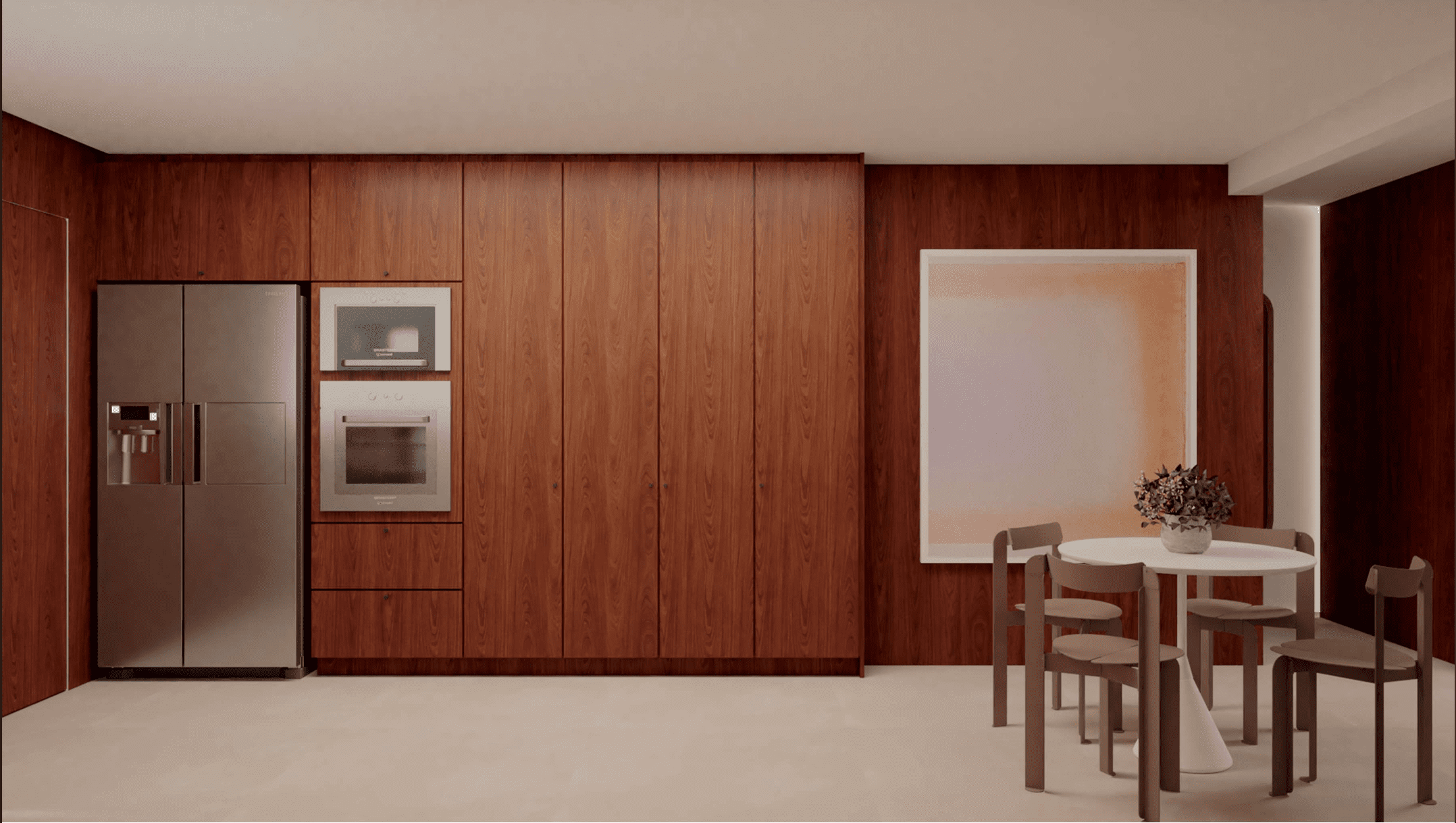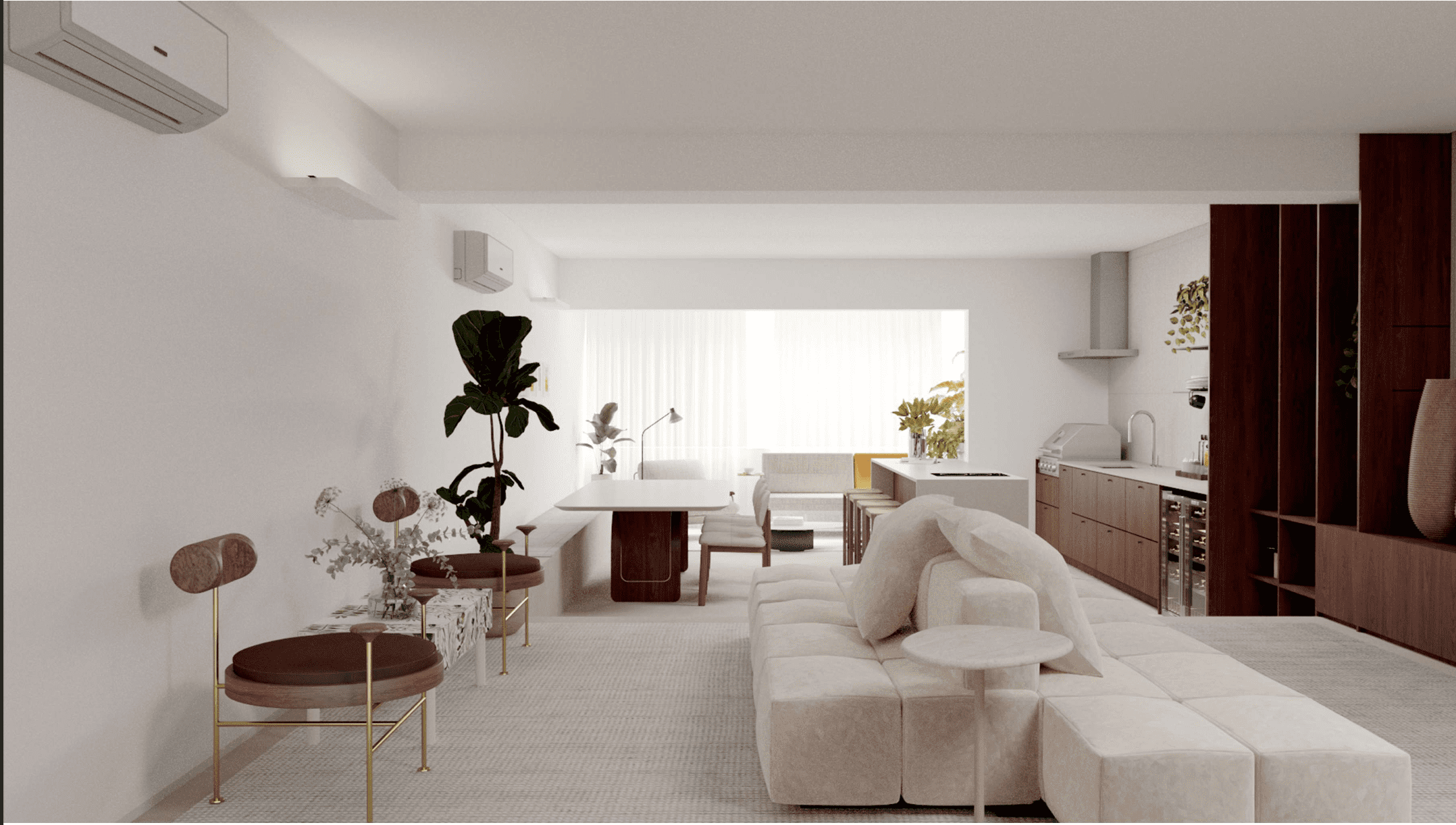 Logo na entrada, a sala de estar se conecta à área gourmet com a sala de jantar, que conta com sacada e vista privilegiada — perfeita para receber, com uma churrasqueria gourmet e sacada. A cozinha possui copa e marcenaria planejada, garantindo praticidade no dia a dia. Os acabamentos elevam o padrão do imóvel: piso vinílico na área íntima, porcelanato na área social e painel em microcimento na sala de estar.