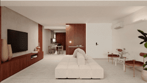 - Como o retrofit transformou esse apartamento?: Instalações elétricas e hidráulicas totalmente renovadas, Readequações de projeto para trazer mais amplitude e integração entre os ambientes, proporcionando mais conforto e funcionalidade, Novos revestimentos. Louças, metais, marcenaria, tampos em pedra, luminárias e portas