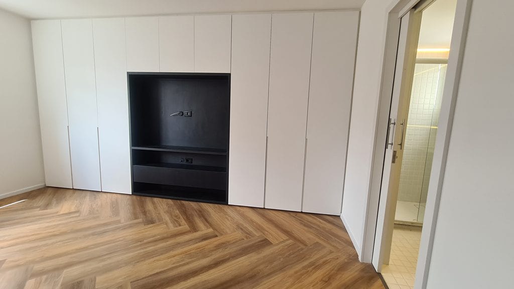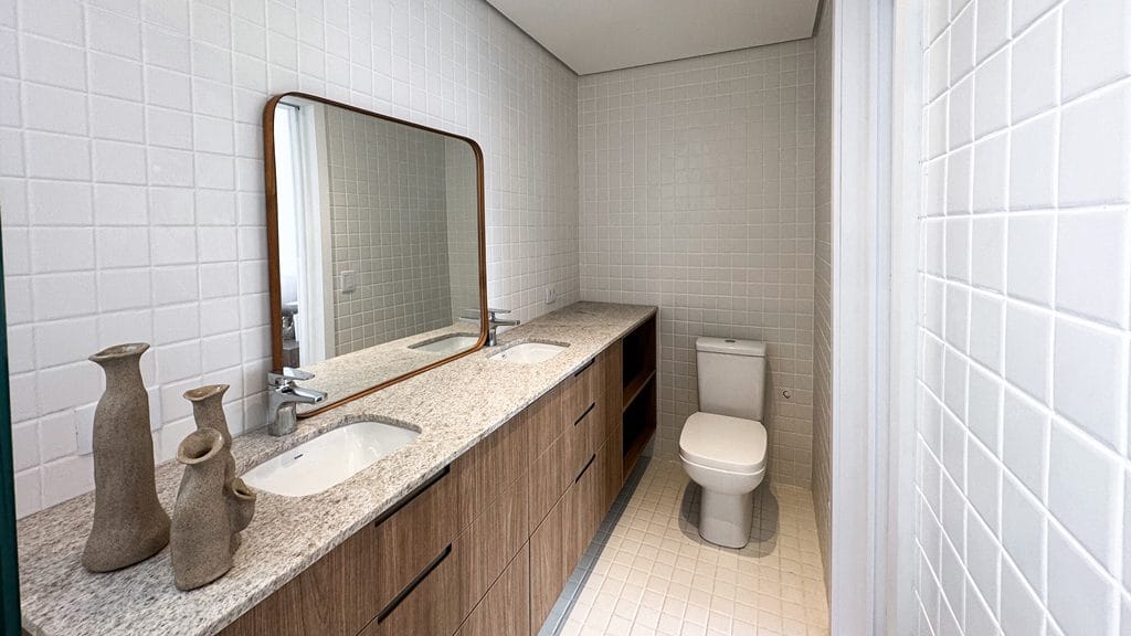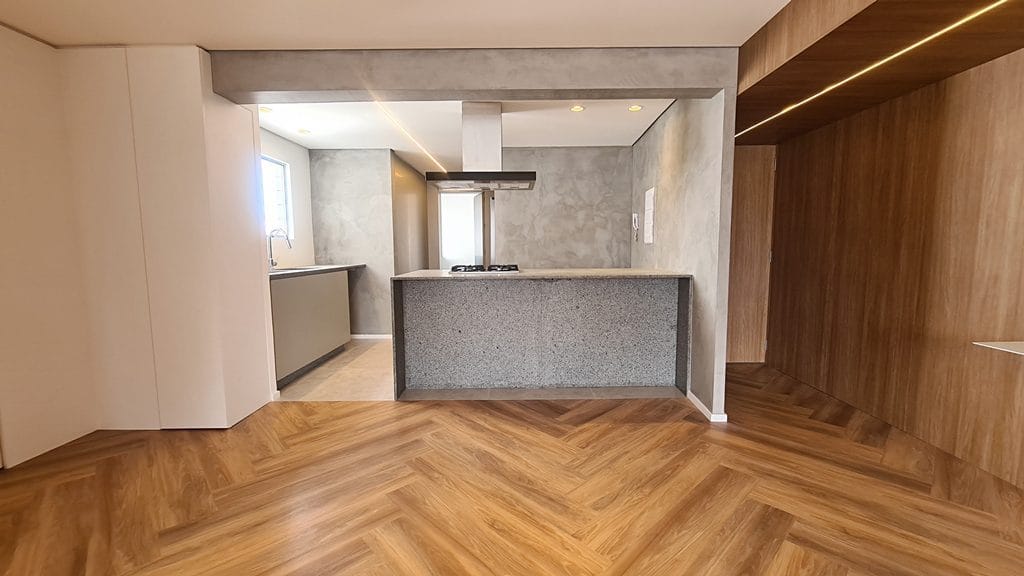- Como o retrofit transformou esse apartamento?: Instalações elétricas e hidráulicas totalmente renovadas, Readequações de projeto para trazer mais amplitude e integração entre os ambientes, proporcionando mais conforto e funcionalidade, Novos revestimentos. Louças, metais, marcenaria, tampos em pedra, luminárias e portas